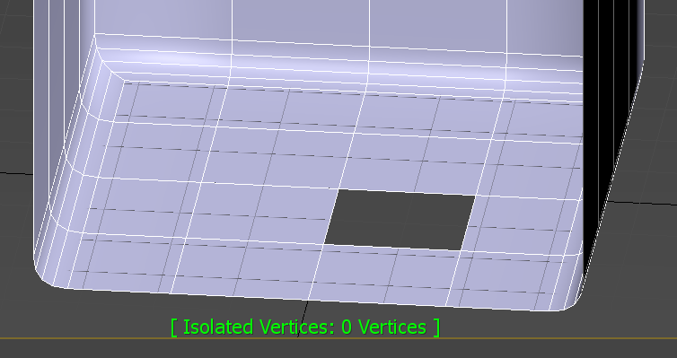 아무 면이나 하나를 지우게 되면 Isolated Vertices이 사라지게 된다. 다시 Cap으로 다시 덮어 준다. 오류가 사라짐.