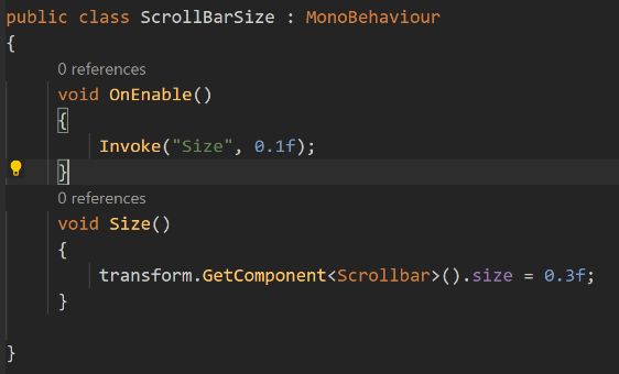 2. Play시 ScrollBar의 Size를 스크립트로 조정해 준다.