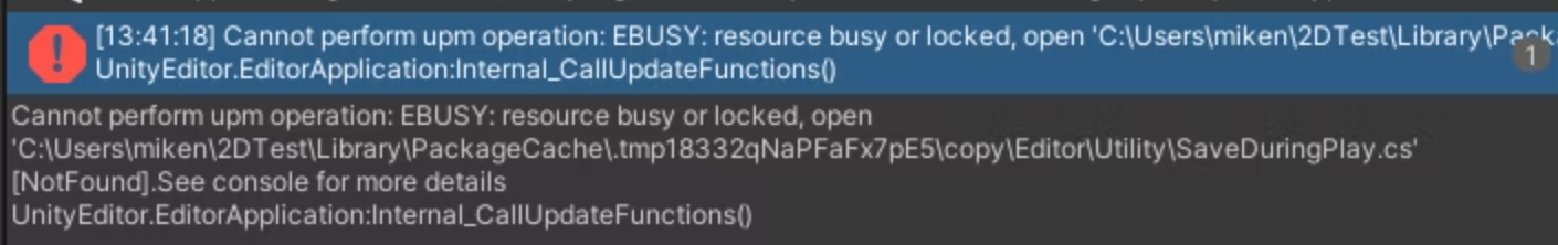 Package Manager에서 package 설치시 다음과 같은 오류가 발생하면서 패키지 설치가 안될때가 있다. 이때 유니티를 끄고, 유니티 에디터 아이콘을 마우스 오른쪽을 클릭해 "관리자 권한으로 실행" 으로 들어가면 잘 설치가 된다.