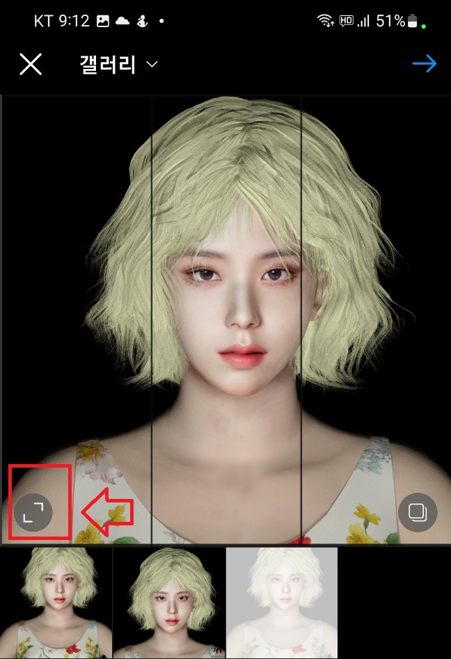 최초 + 버튼을 누르고, 게시물을 올리게 되면 다음과같이 사진을 선택하는 부분이 있다. 이때 아래 사진의 빨간색 네모를 누르게되면 사진이 사이즈에 맞게 들어간다. 만약 누르지 않고, 올리게 된다면 4:5 (1080x1350px) 사이즈의 그림이라고 하더라도 잘리게 된다.