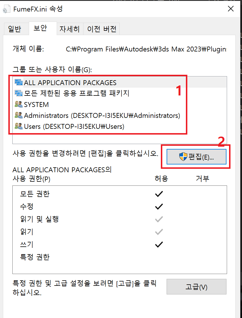 2) FumeFx.ini 파일의 속성을 연다.