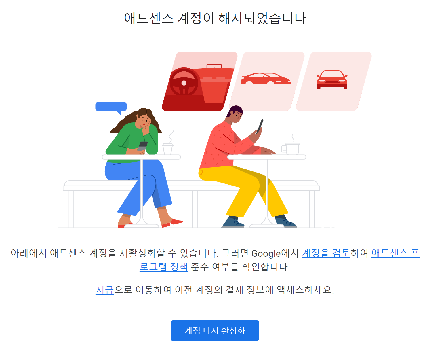 * 구글 계정이나 Pay 결제 정보 등의 다른 구글 제품에서 '결제프로필' 항목을 삭제하여 애드센스 계정 해지를 시도하는 방식은 공식(정상)적인 계정 해지 절차가 아니기 때문에 추후 다른 문제가 발생할 가능성도 있습니다. 때문에 '결제프로필' 삭제 애드센스 계정을 강제 해지하는 방법은 가능하면 하지 않으시는 것이 좋겠습니다.